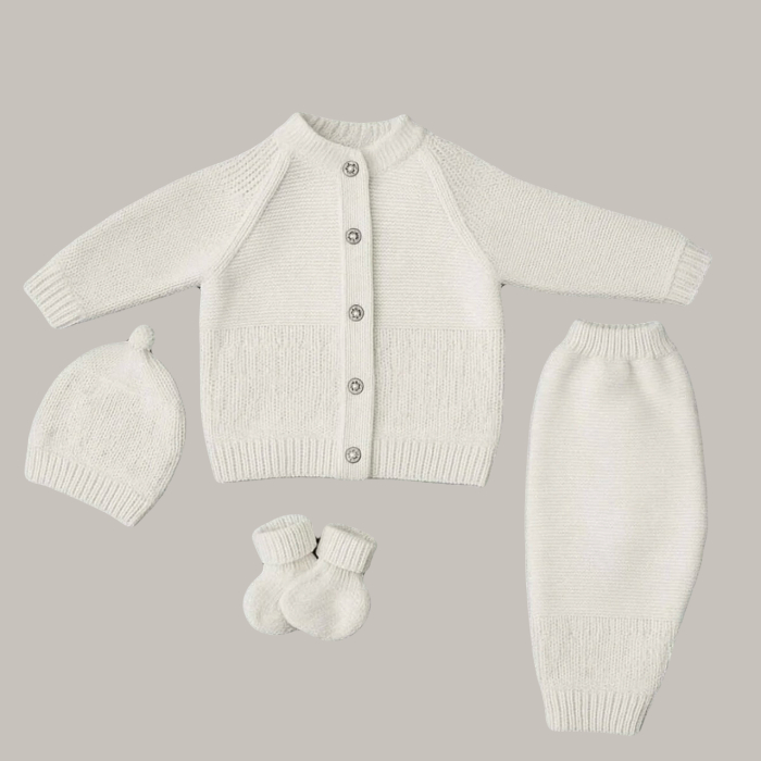 Baietei 0-2 ani - Sac tricotat pentru bebeluși cu glugă și interior pufos – bej, roz, bleu, alb