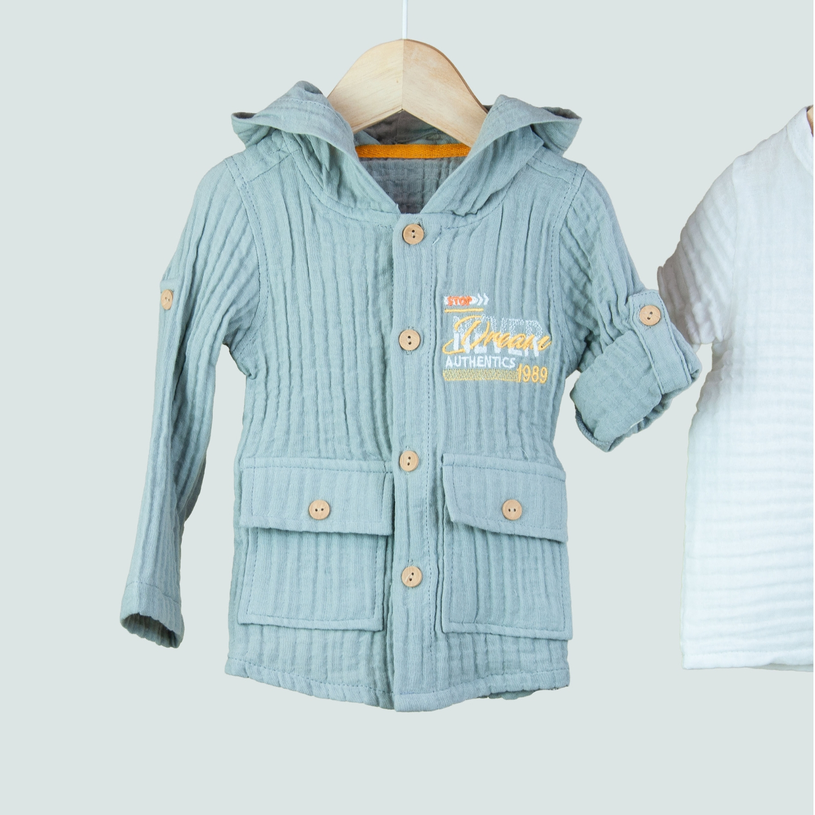 🧥 Hanorac subțire cu glugă – gri-verzui