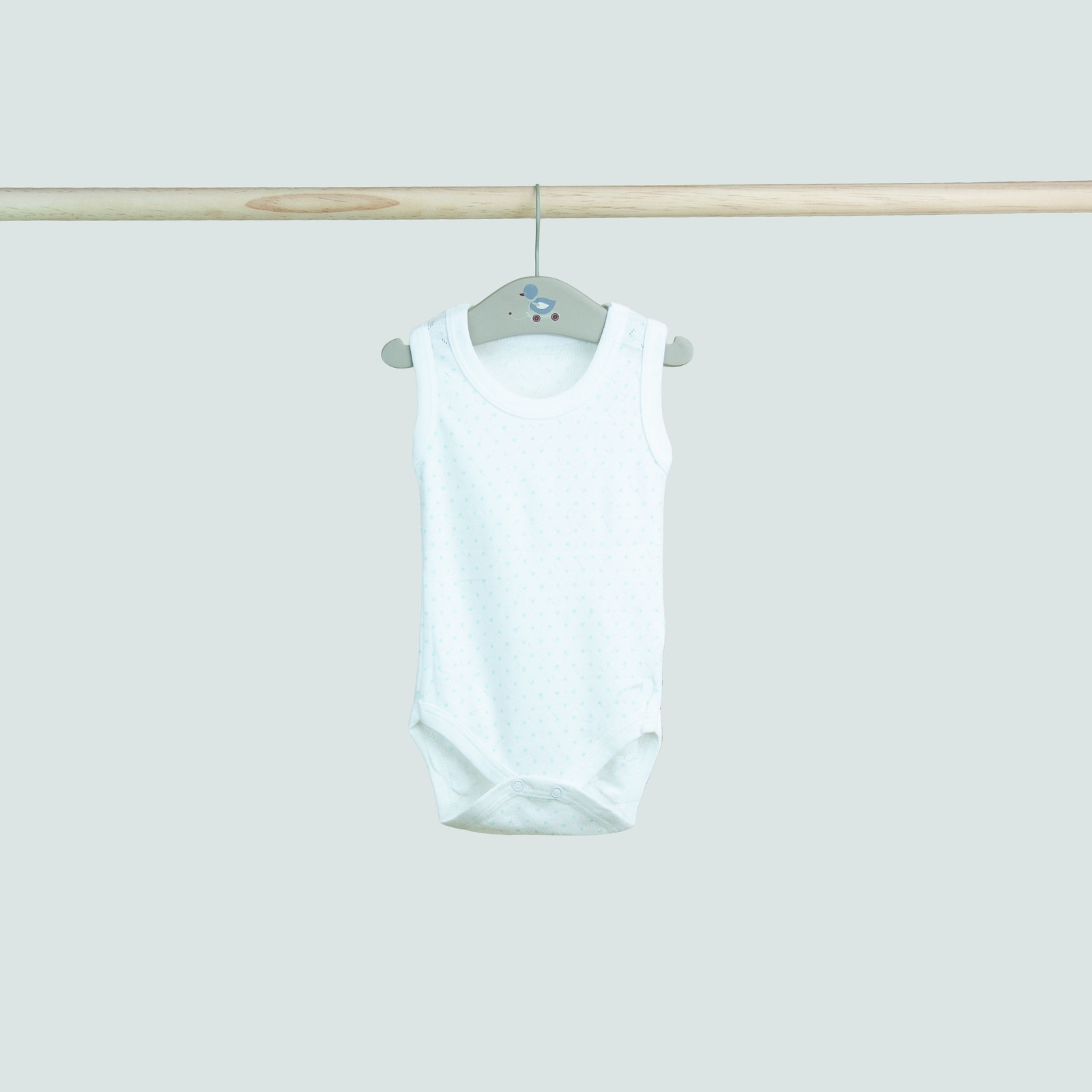 🤍 Body bebeluș fără mâneci – alb cu buline fine turcoaz 🤍