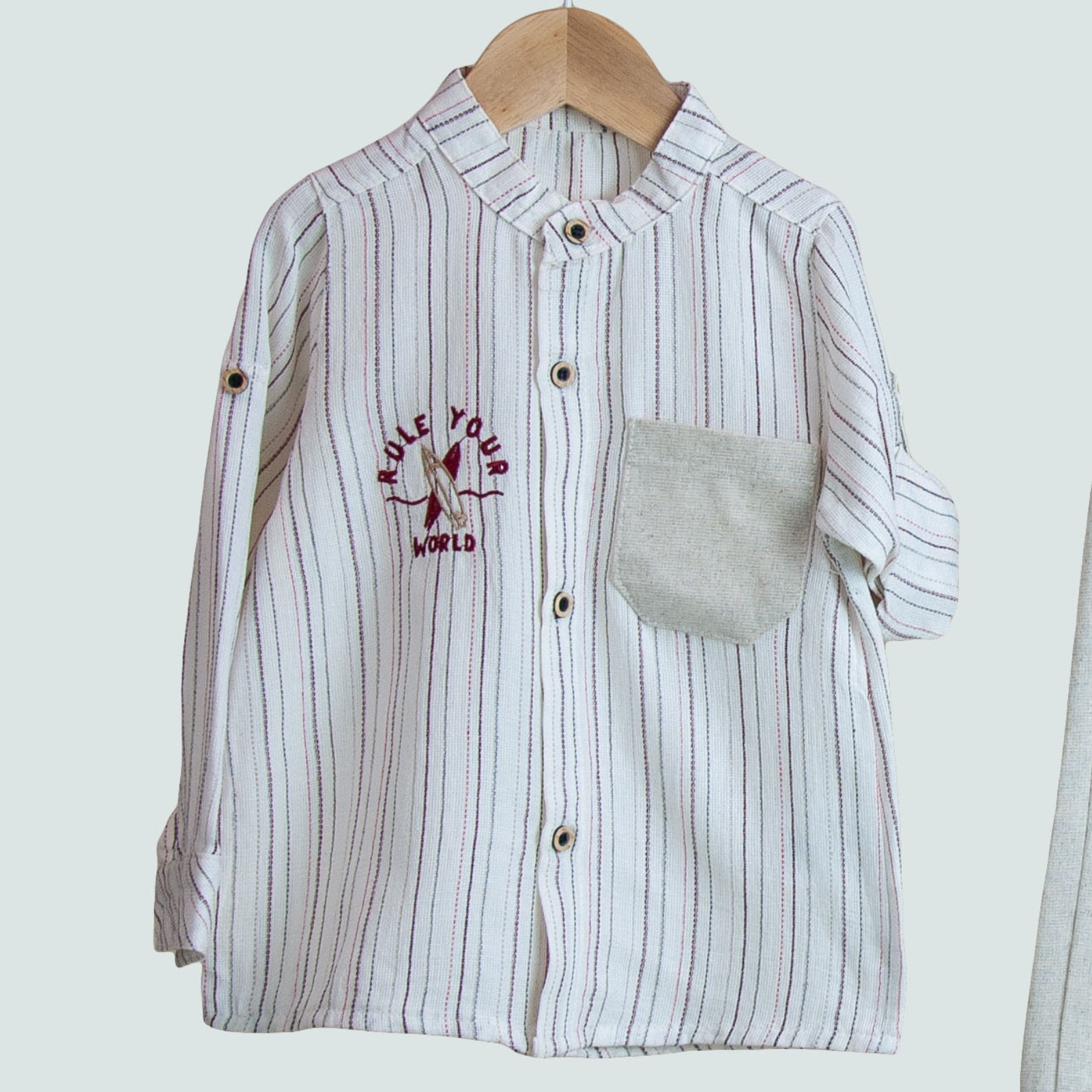 👔 Cămașă în dungi cu mesaj brodat „Rule Your World”