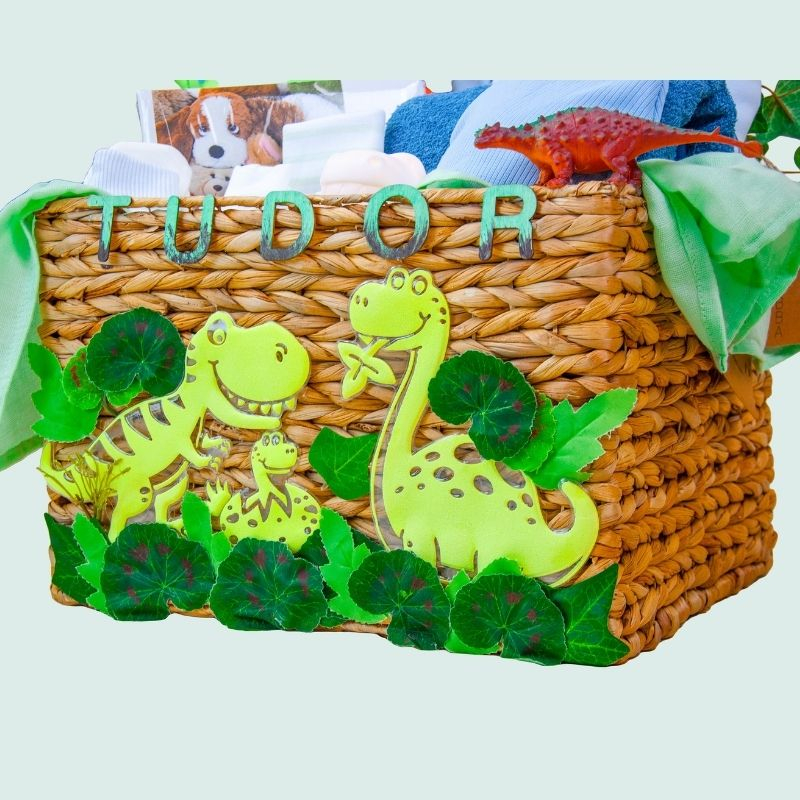 Coș cadou DELUXE – Aventură cu dinozauri pentru un băiețel special