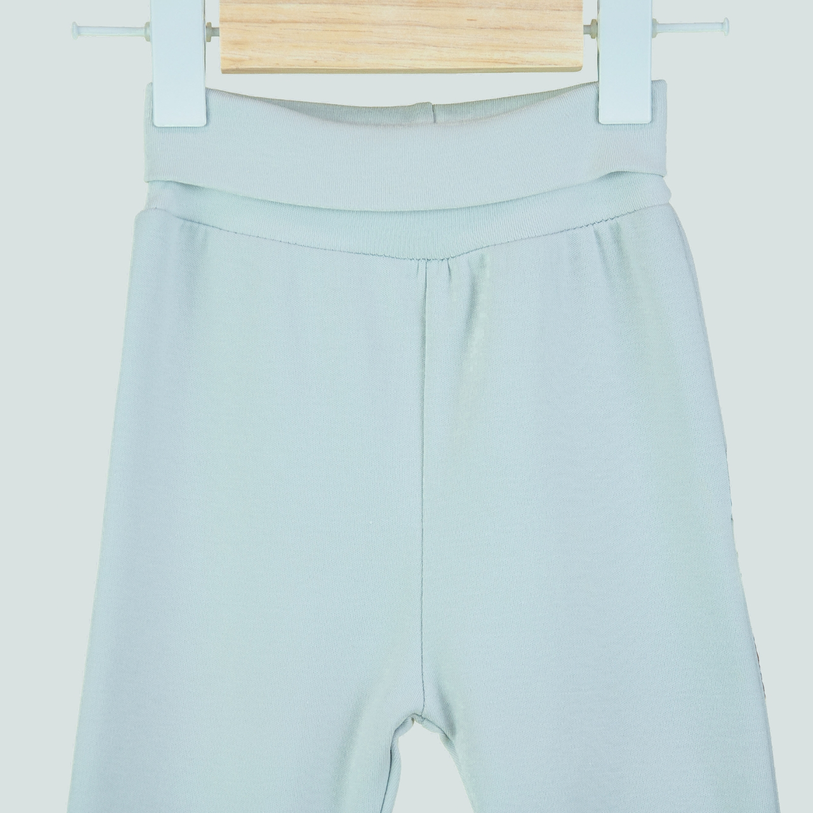 Acești pantaloni în nuanță pastel albastru-deschis cu botoșei albi sunt perfecți pentru orice ținută de zi. Se asortează ușor cu body-uri, bluze sau hanorace și pot fi purtați atât acasă, cât și în deplasări.