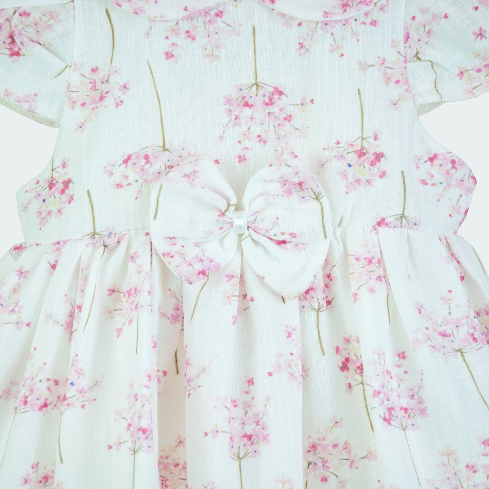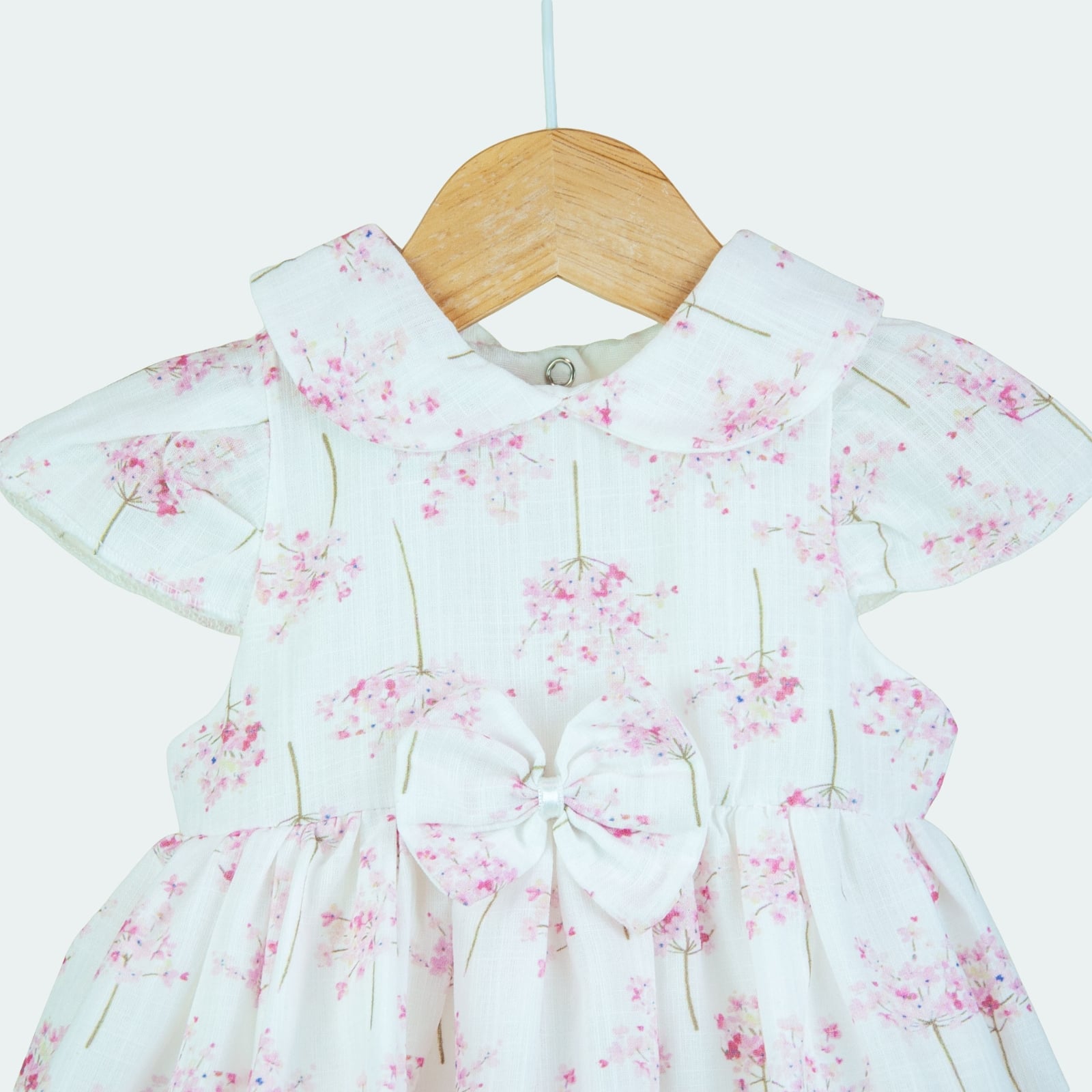 🌸 Rochiță albă cu imprimeu floral roz – prospețime și gingășie pentru micile domnișoare 🌸