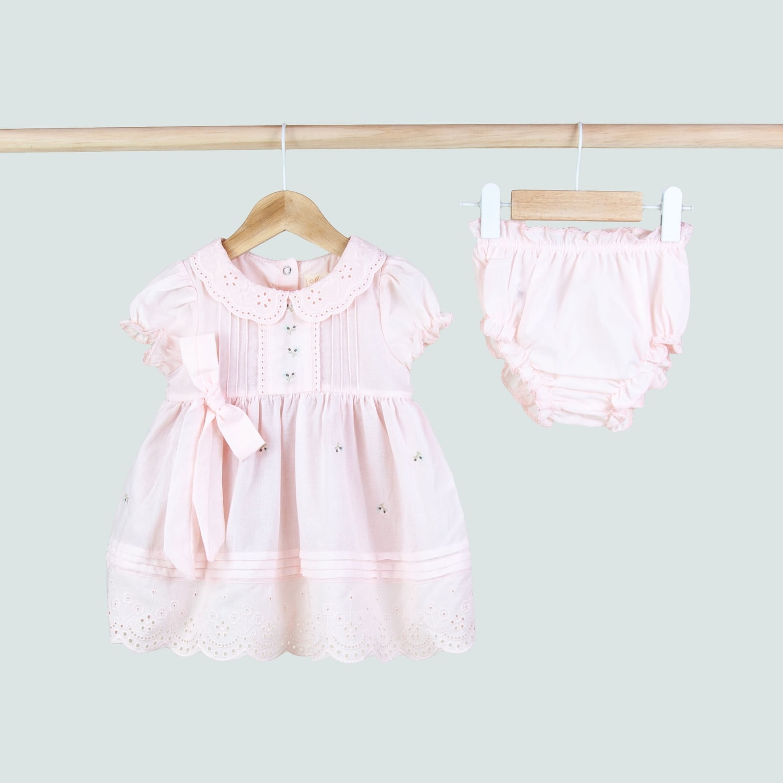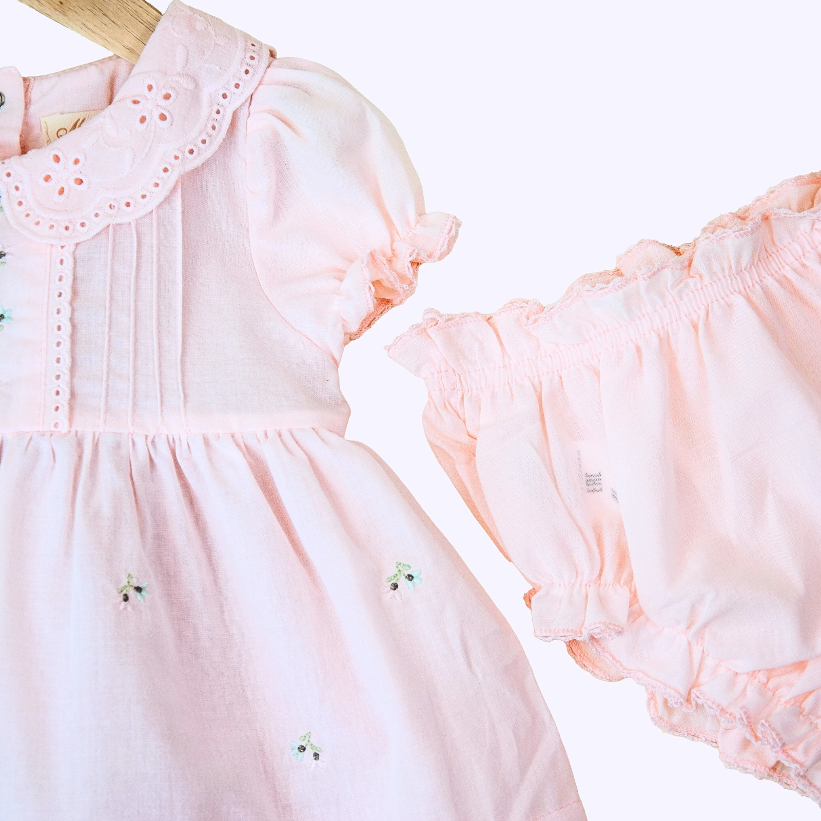 🌸 Set roz pal din bumbac brodat – rochiță și chiloțel asortat pentru fetițe delicate 🌸